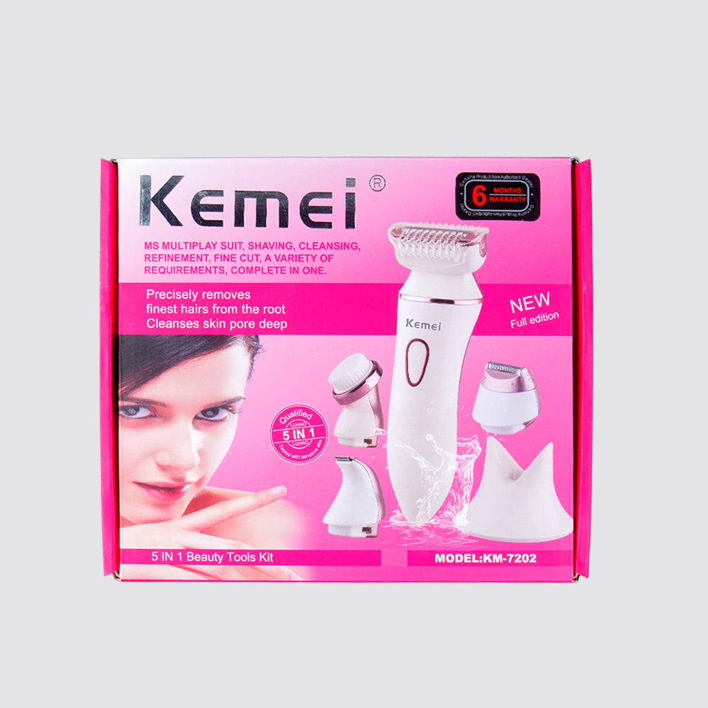 KM-7202 5 in 1 Shaver | Facial cleansing brush | Shaving Blade | Trimming Blade | 3 in 1 blade | Charging dock